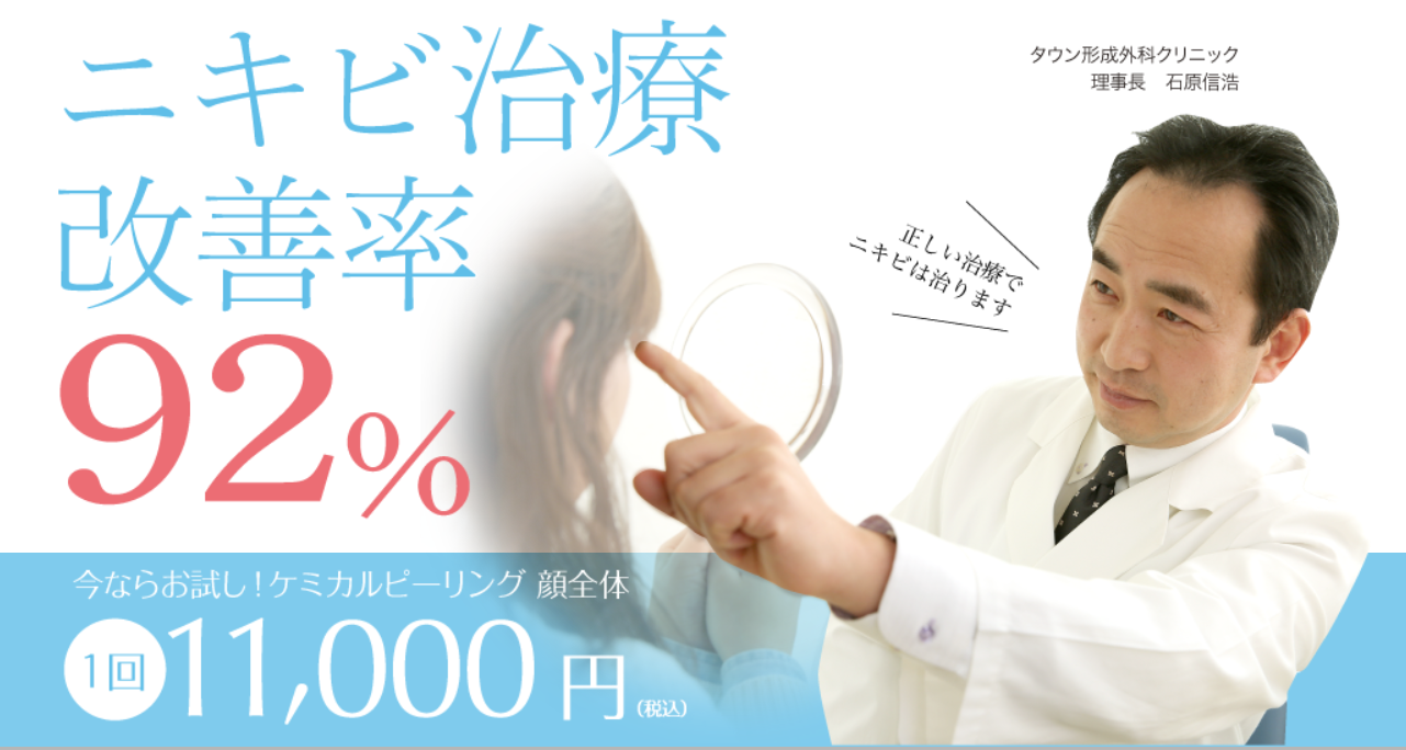 仙台タウン形成外科クリニックでは、ニキビ跡治療のメニューを豊富に揃えています。肌のターンオーバーを促すことでニキビ跡を改善に導くケミカルピーリングに加え、フォトフェイシャルやビタミンCイオン導入なども必要に応じて受けられます。