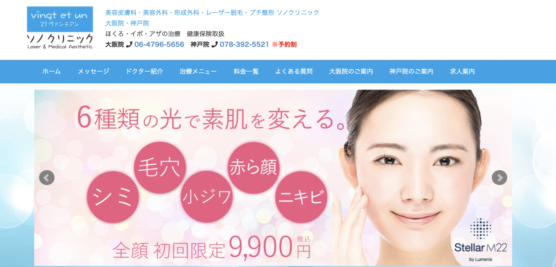 神戸ルミナスクリニックの施術と料金