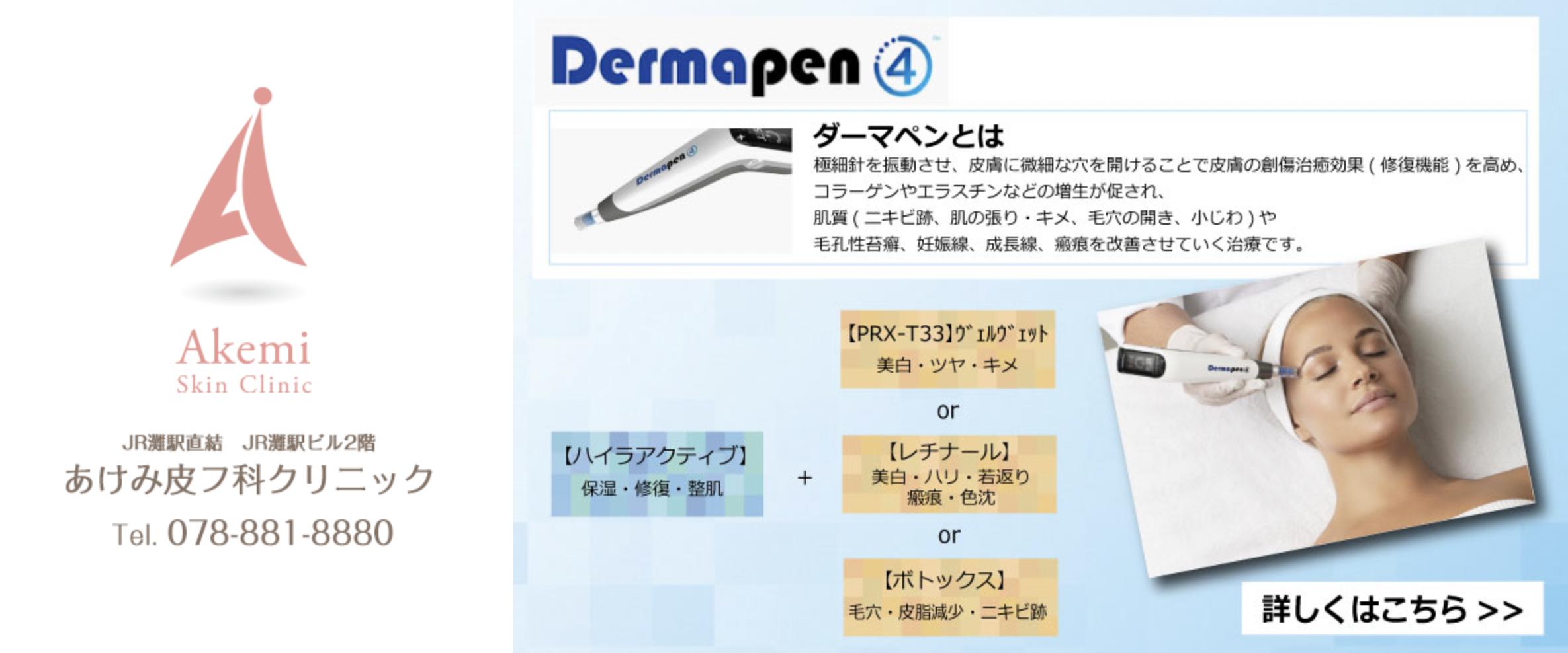 神戸山手クリニックのニキビ跡治療にダーマペン4の導入も行なっています。ダーマペンはクレーターなどの凸凹した肌にも効果的です。現在なら通常22,000円のところ、初回価格として19,800円で少し安い値段で受けられます♪