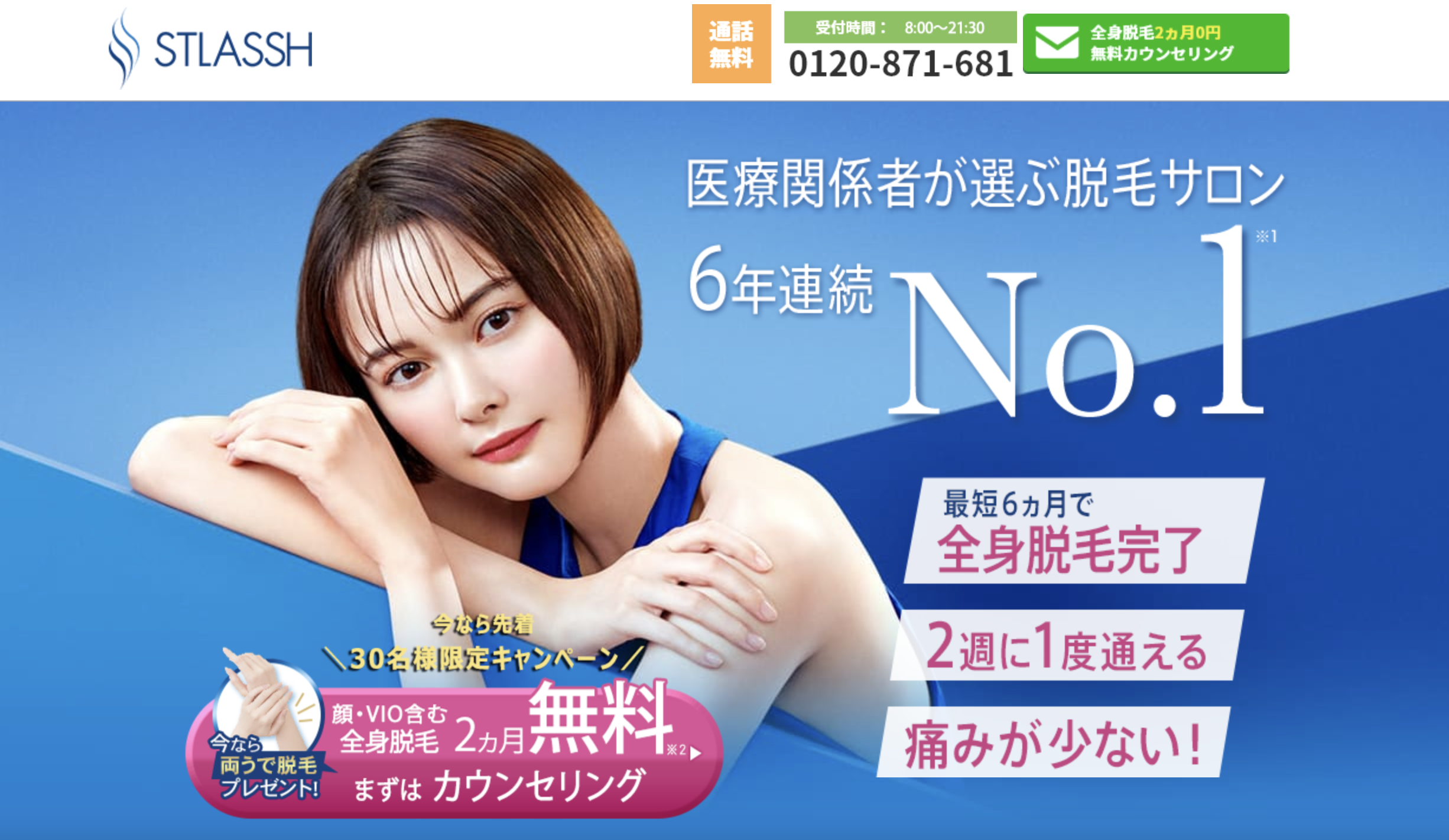 ストラッシュサロン脱毛では顔やVIOを含む、61ヶ所の全身脱毛を2ヶ月間無料で提供しています。全身脱毛月額制コースで、月々4,400円に!また全身脱毛通い放題メニューもあり、半年で198,000円と安い値段で何度も全身脱毛が可能です。