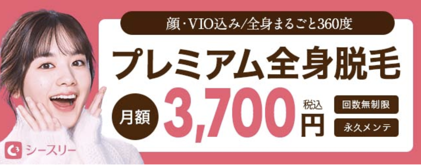 シースリー神戸三宮店の全身脱毛の特徴は、開始から完了まで納得いくまで通い放題ができるところです。完了した後に毛が生えてきても追加料金はかかりません。無制限の通い放題が月々3.700円で脱毛できるおすすめのサロン脱毛ですよ♪