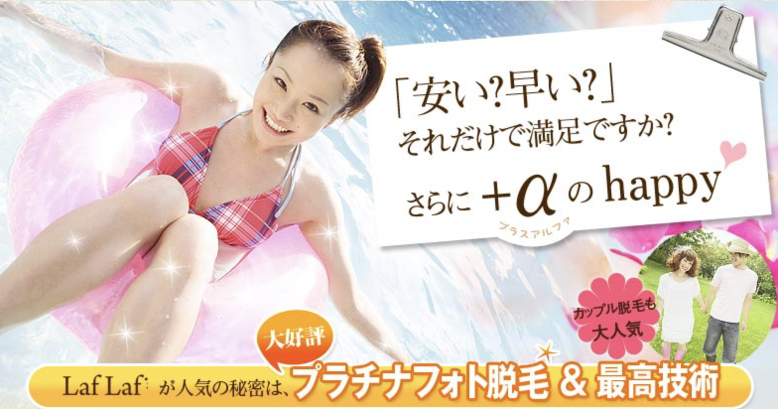 LafLaf(ラフラフ)の脱毛は、神戸初のNEWマシン「プラチナフォト脱毛」を導入しています。この脱毛機はこれまでのレーザーよりも効果を実感しやすく、痛みも少ないのが特徴です。肌にダメージを与えないため、これまで難しかったデリケートな部分など含め、ほとんどの全身脱毛処理ができます。
