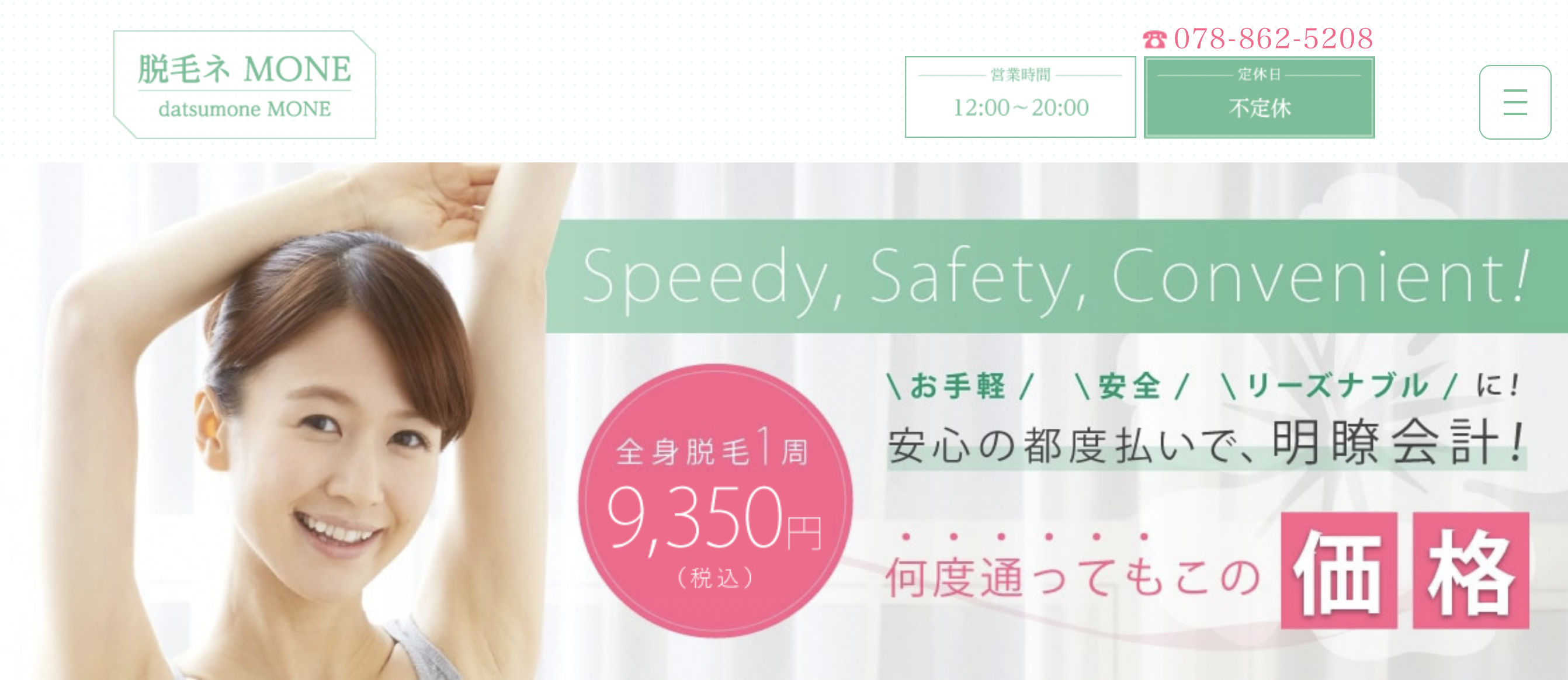 神戸にある脱毛ネMONEは、完全個室のプライベート空間で脱毛を行います。脱毛は女性スタッフが行うため安心してくださいね。落ち着いた雰囲気でリラックスしながら、全身脱毛もできるサロン脱毛です。神戸三宮駅から徒歩3分にあるので通いやすいですよ♪