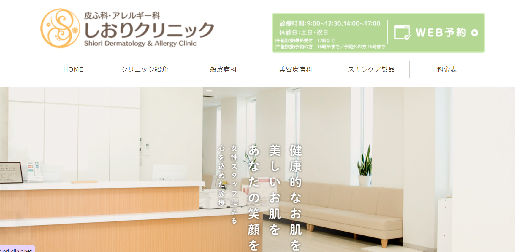 しおりクリニックでは、一般皮膚科から美容皮膚科まで女性医師が中心に診察しています。幅広い症状を女性目線で診てくれるので、男性だとなかなか相談しづらいという方はぜひ一度相談してみてくださいね。