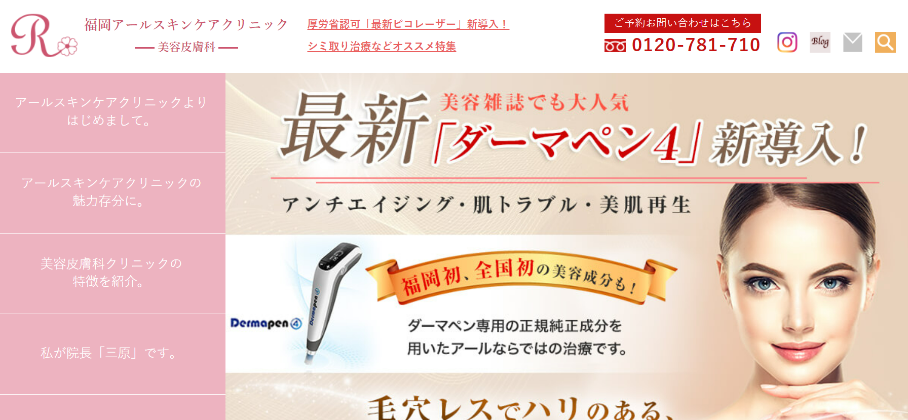 福岡アールスキンケアクリニックは東京や海外から通う方や、他院からの紹介、他院の治療で満足できなかった方も多く通っている、評判の高いクリニックです。これは施術のクオリティの高さにこだわった独自のメソッドがあるとのこと。確かな技術があることがわかります。