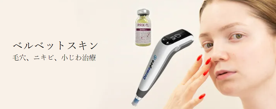 ベルベットスキンとは、ダーマペンとマッサージピールを組み合わせた施術のこと。ダーマペンで微細な穴を開けた肌にピーリング剤の一種であるマッサージピールを塗り込むことで、ターンオーバーが活性化します。2つの施術を同時に行うことで良さが最大限に発揮でき、スピーディーにニキビ跡の改善へと導きます。
